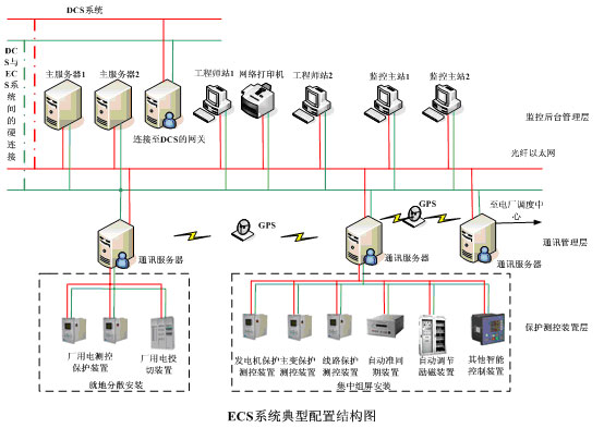 FCPower—ECS電廠電氣監控系統包括保護測控裝置層、通信管理層和監控后臺管理層三層結構,采用分層分布式架構,在先進的計算機技術和網絡通信技術平臺上,實現發電機組、廠用電和網絡控制部分的監測、控制、調節、保護和遠動功能。