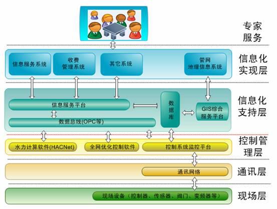 用于供熱過程數據的采集、控制和調節;底層是熱力站,是集團供熱流程的基本單元。