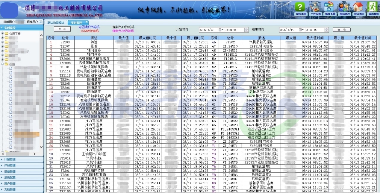該系統要包含甲乙酮廠、橡膠廠、順酐廠、化工廠、綜合化工廠、丁苯膠乳廠八家生產單位的數據,也包括鍋爐廠、儲運廠、供排水廠、質檢中心、檢修公司、電氣公司、儀表公司等七家輔助企業的計量管理數據。