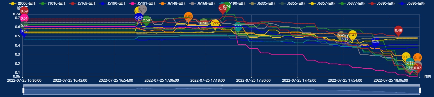 生產(chǎn)數(shù)據(jù)報(bào)警包括通訊故障報(bào)警、異常停機(jī)報(bào)警、參數(shù)超限報(bào)警三個(gè)報(bào)警,通過常規(guī)高低限設(shè)定、多條件組合報(bào)警設(shè)定、同A2日報(bào)標(biāo)準(zhǔn)值變化率報(bào)警設(shè)定三種方式,實(shí)現(xiàn)全面監(jiān)控油田生產(chǎn)過程,通過平臺預(yù)設(shè)邏輯判斷,幫助運(yùn)維管理人員精準(zhǔn)定位故障原因及故障環(huán)節(jié),快速解決問題,恢復(fù)正常生產(chǎn)。