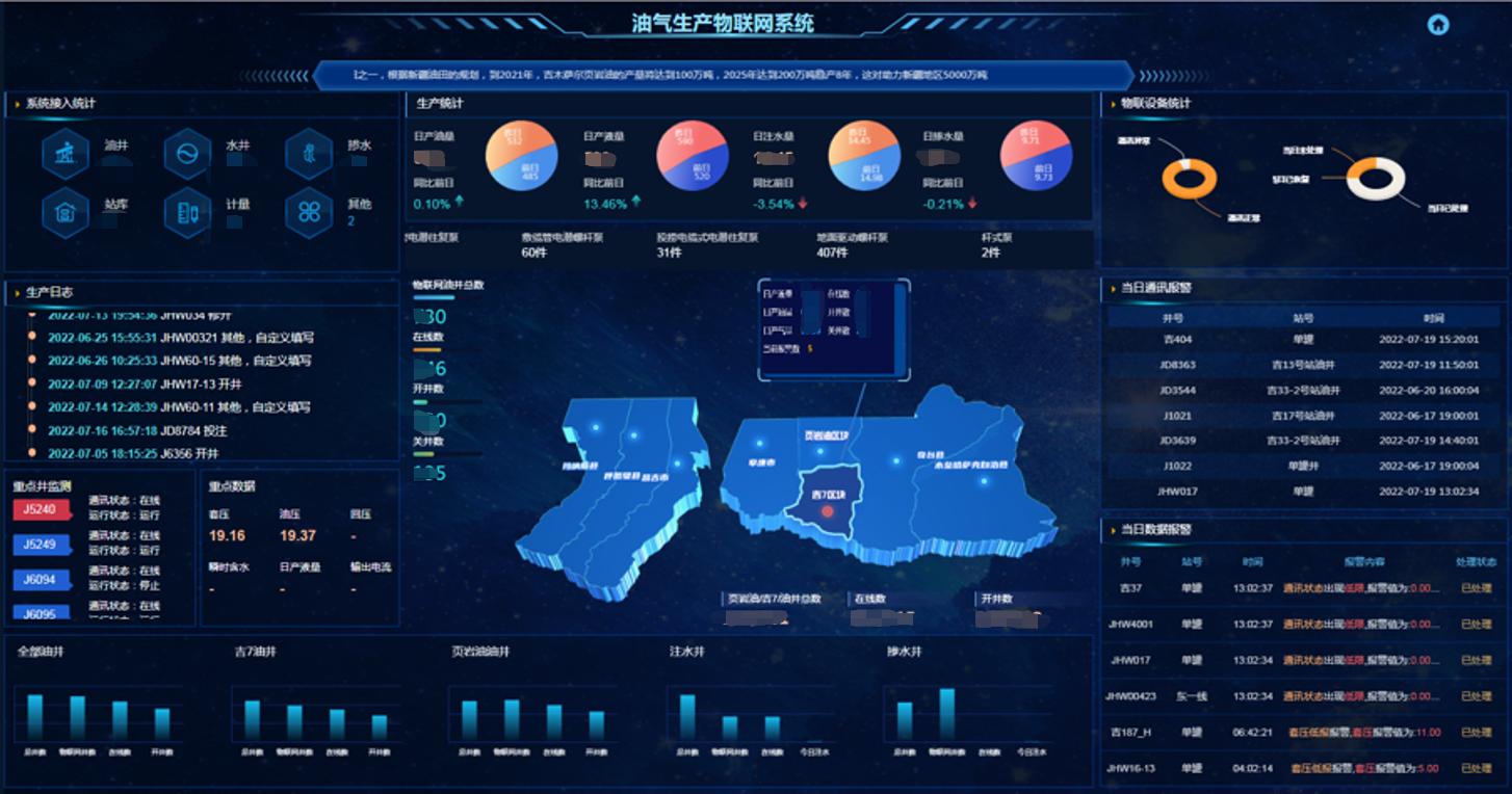 基于基礎(chǔ)數(shù)據(jù)的收集,將信息數(shù)字化呈現(xiàn)。對油井、注水、摻水、計(jì)量、站庫、輸油的所有控制參數(shù)、測量參數(shù)進(jìn)行實(shí)時(shí)監(jiān)測,分析生產(chǎn)系統(tǒng)各部位的運(yùn)行狀態(tài)。此外針對每個(gè)生產(chǎn)環(huán)節(jié),重要裝置,系統(tǒng)提供精細(xì)化的數(shù)據(jù)實(shí)時(shí)監(jiān)控;使平臺管理者和具體操作人員無需實(shí)時(shí)巡視現(xiàn)場也可清晰準(zhǔn)確獲知現(xiàn)場工況信息。
