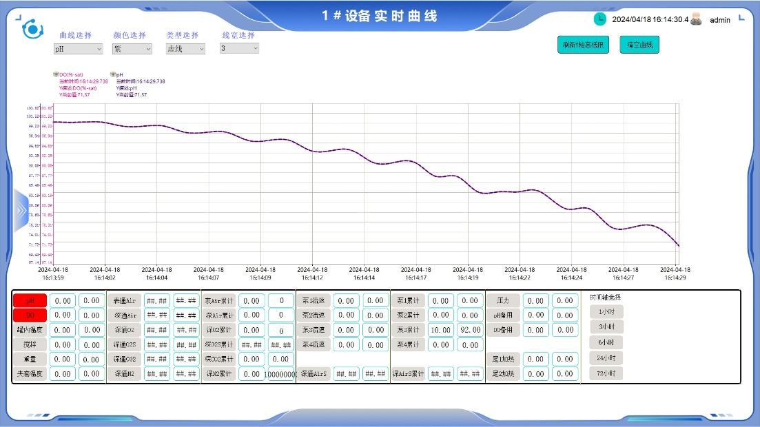 數據趨勢曲線美觀易用,系統在運行態,用戶享有高度個性化的設置權限,能夠自定義線寬、色彩、樣式等曲線效果設定,支持縮放、平移、滾輪拖拽、一鍵導出、打印等操作,使曲線數據的分析更為精致。為應對復雜多變的數據顯示要求,可實現將不同時段、不同批次、不同類型數據庫的數據進行抽取展示,滿足曲線批次對比分析的管理需求。