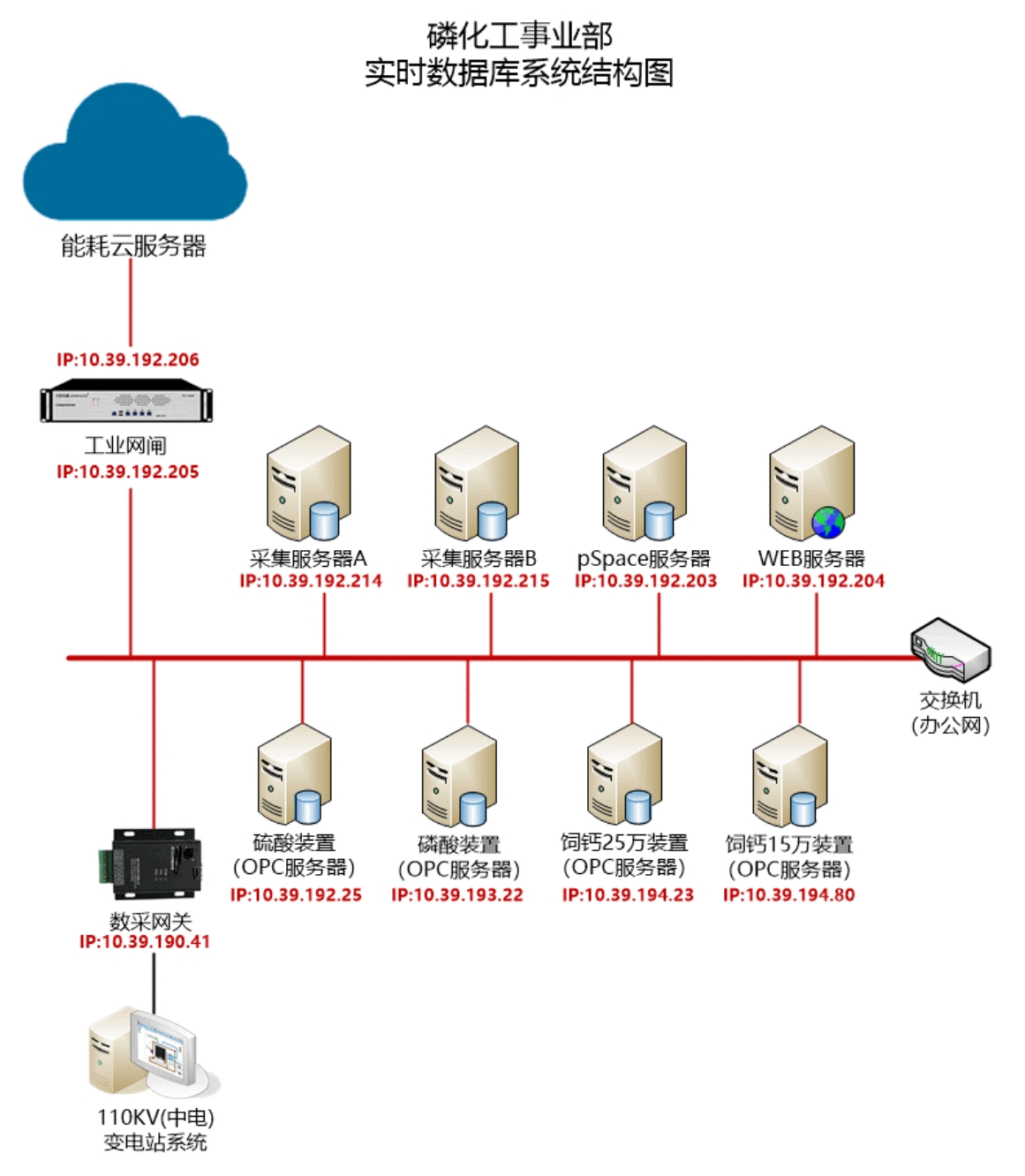 云天化集團——磷化工事業部實時數據庫項目,采用力控科技pSpace軟件和Fwebview軟件建設而成。磷化工事業部實時數據庫項目中的數據涉及電力數據,為保證電力的絕對安全,電力數據使用采集隔離網關采集數據,其他DCS通過OPC直接讀取數據,并將能耗數據通過工業網閘上傳到省級能管平臺。