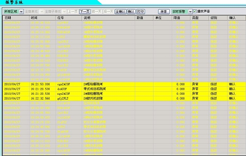 ◆ 系統實現了遠程設備管理部署功能,實時監測到遠程設備的啟停、工作狀態,遠程設備的報警信息可迅速的反饋到中心控制室。報警分為四種方式:斷線報警(包括設備故障報警)、超標報警、開關設備報警和異常情況報警。可以靈活設定報警條件,并和現場人員的手機、短信綁定,在滿足報警條件時,自動發送報警信息。
