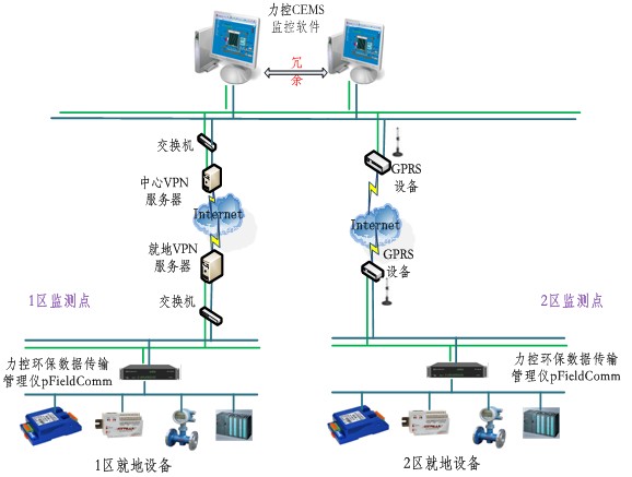 2)整合GPRS/CDMA/寬帶通訊技術,實時監視重點污染源、污染物濃度、污染物排放總量等數據,實時控制現場設備的運行狀態,傳輸大氣污染自動監測數據至環保局中心控制室。