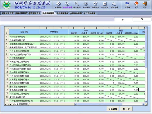 提供多種條件查詢方式和查詢結果分類、分項排序、統計最大值、最小值、平均值、匯總值等分析處理功能。提供統計各類監測數據功能,如流量統計;COD、氨氮濃度分析;COD、氨氮排放總量統計;煙氣流量統計;煙氣、煙塵、CO、SO2、NOx濃度分析;煙氣、煙塵、CO、SO2、NOx排放總量統計等,提供查詢結果打印功能。