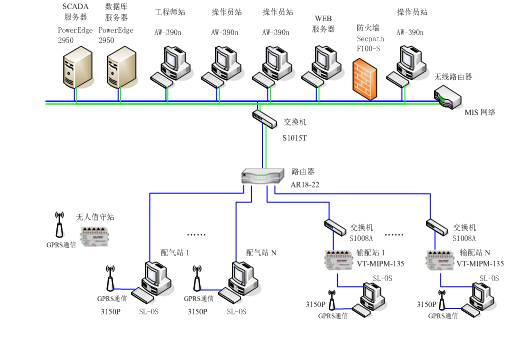 現(xiàn)場通信網(wǎng)絡負責將儀表采集到的數(shù)據(jù)匯總到數(shù)據(jù)采集傳輸服務器。標準RS232/485 電氣接口,支持Modbus 通信協(xié)議及非標準通訊協(xié)議的開發(fā)。數(shù)據(jù)采集傳輸服務器負責對實時數(shù)據(jù)進行匯總、分析、存儲并與上位機的數(shù)據(jù)交換。同時,數(shù)據(jù)采集傳輸服務器還可以負責實現(xiàn)本地監(jiān)控的人機界面功能,是整個系統(tǒng)的中心環(huán)節(jié),也是關鍵環(huán)節(jié)。