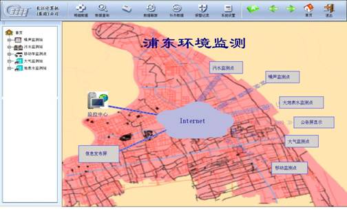 本系統(tǒng)將地理信息系統(tǒng)(GIS) 融入其中,利用GIS 強大的地理信息分析功能,結合環(huán)境數(shù)學模型,實現(xiàn)基于地理信息基礎上的數(shù)據(jù)查詢、統(tǒng)計、環(huán)境制圖、顯示等功能,以及污染源分析、區(qū)域環(huán)境評價、預警應急、環(huán)境決策管理等。