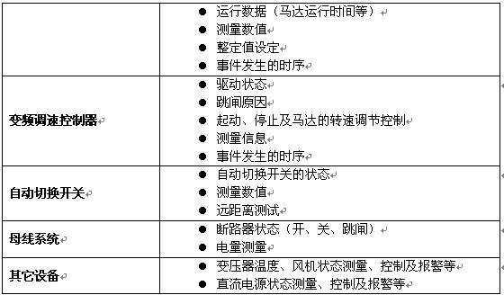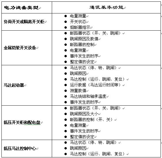 附錄: 力控系統對各電力設備實現的監測、保護、控制通訊基本功能。