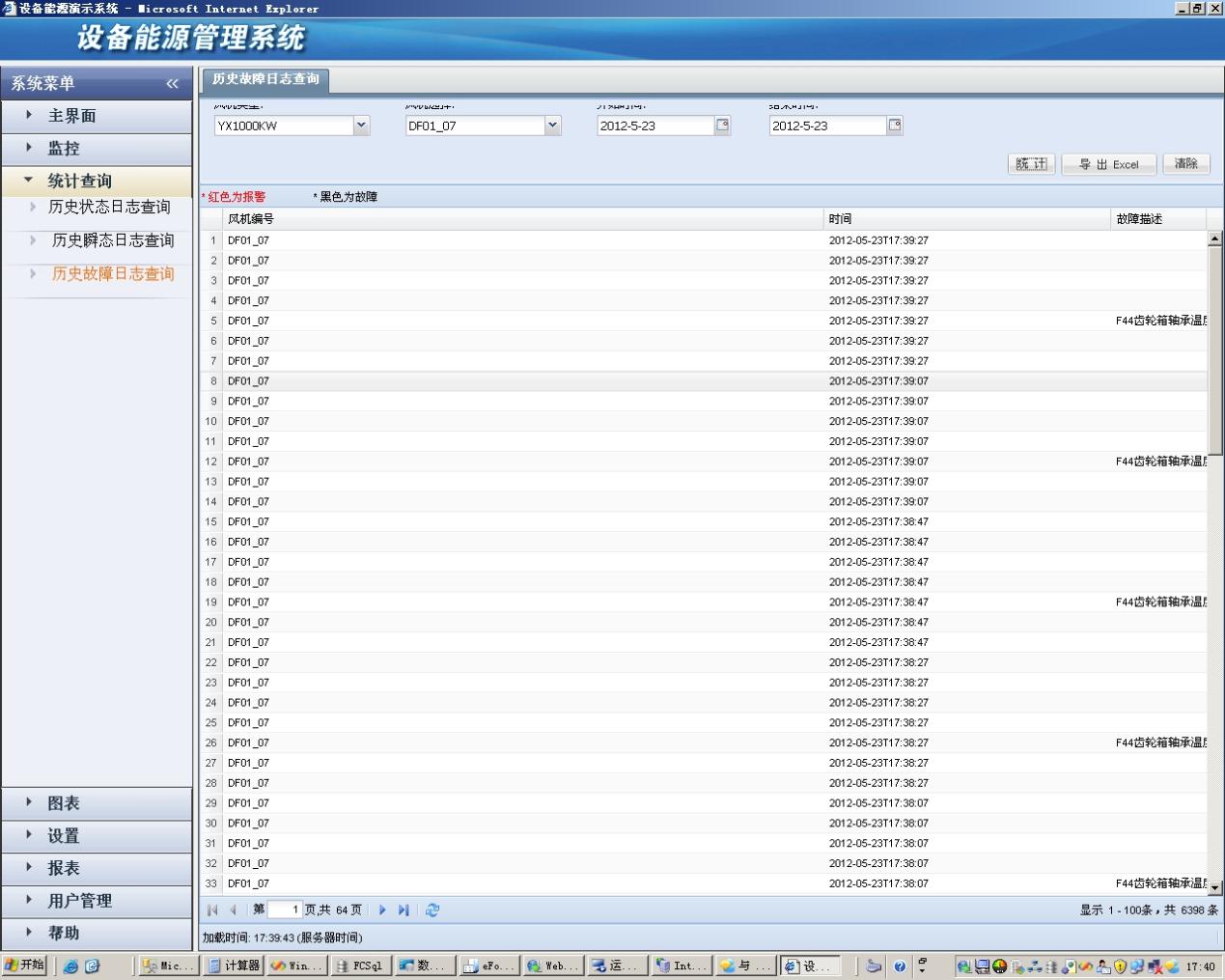 3) 歷史故障日志查詢:查詢當(dāng)前選擇風(fēng)機(jī)在查詢時(shí)間段內(nèi)的故障狀態(tài)。