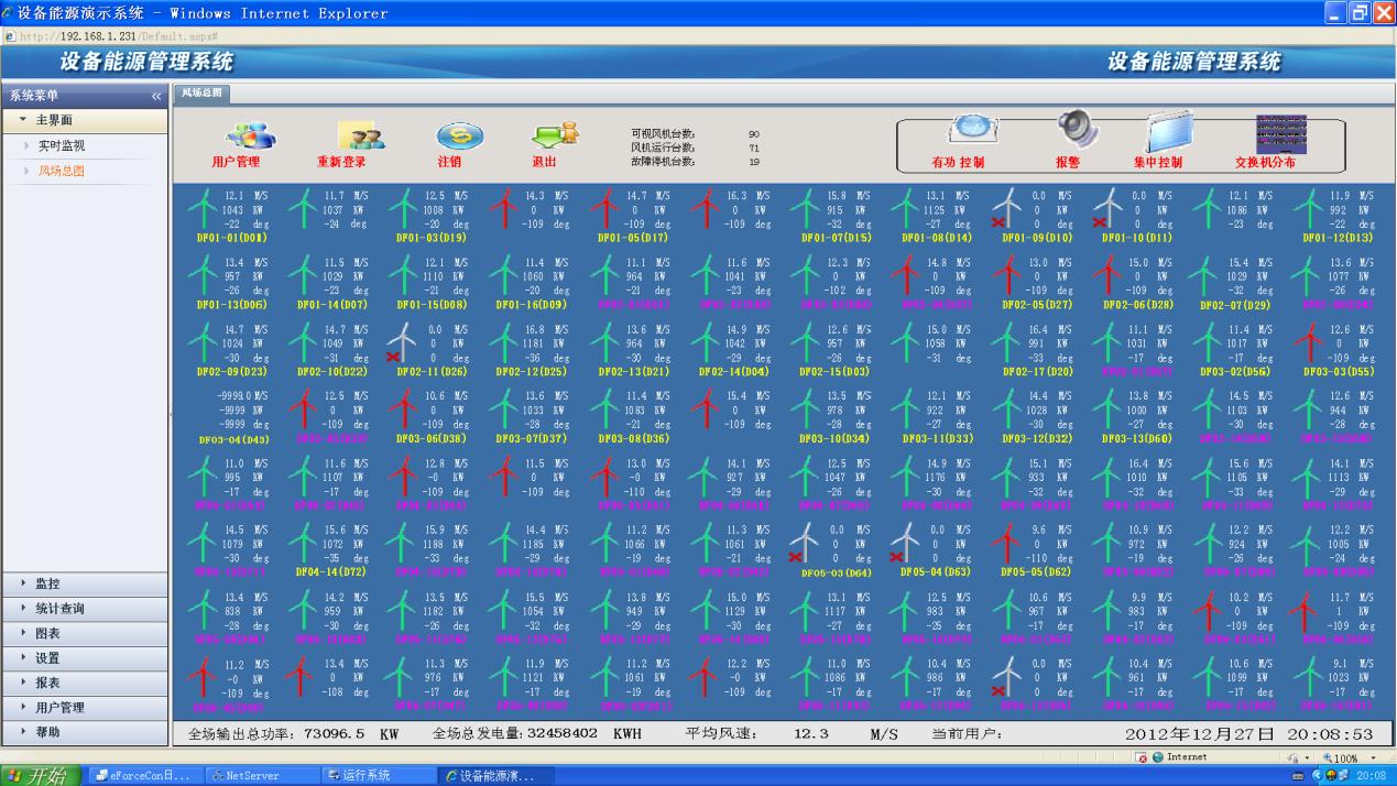 4) 實(shí)時(shí)控制風(fēng)場(chǎng)內(nèi)所有風(fēng)機(jī)的啟動(dòng)、停止、復(fù)位等功能。