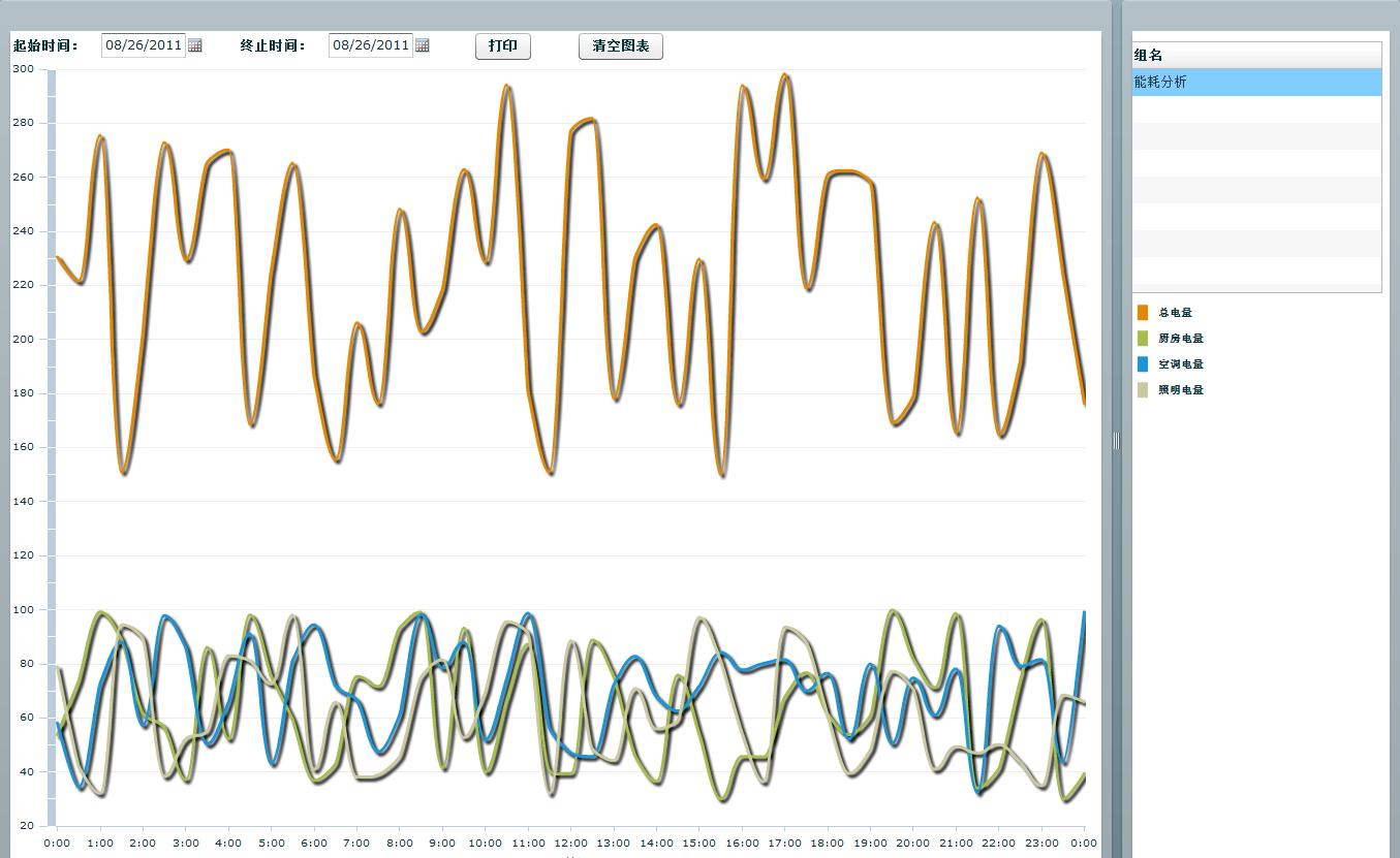 根據(jù)所選費(fèi)率以及實際用電狀況,分時間段(離峰、半尖峰、尖峰)顯示用電趨勢以及用電報表。