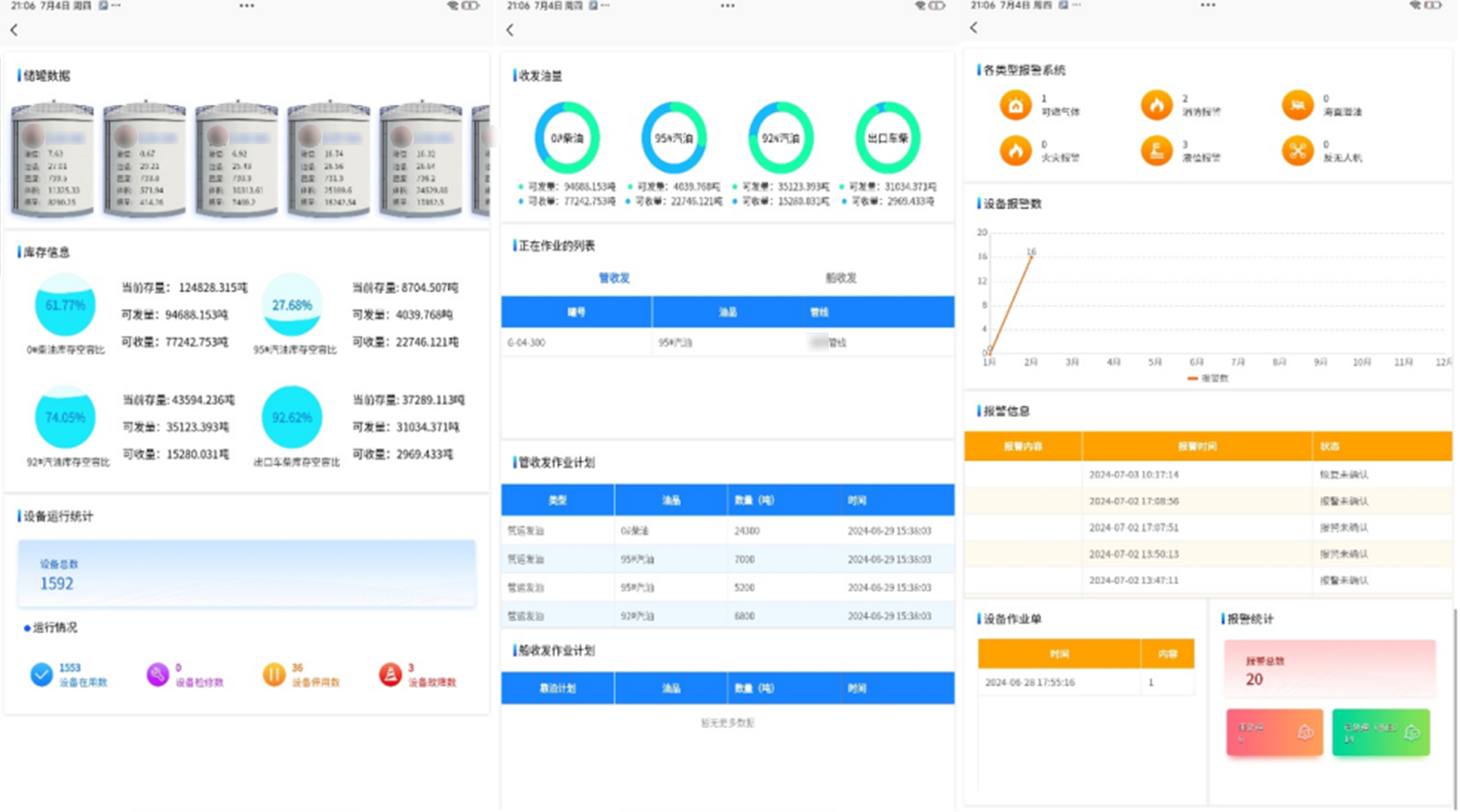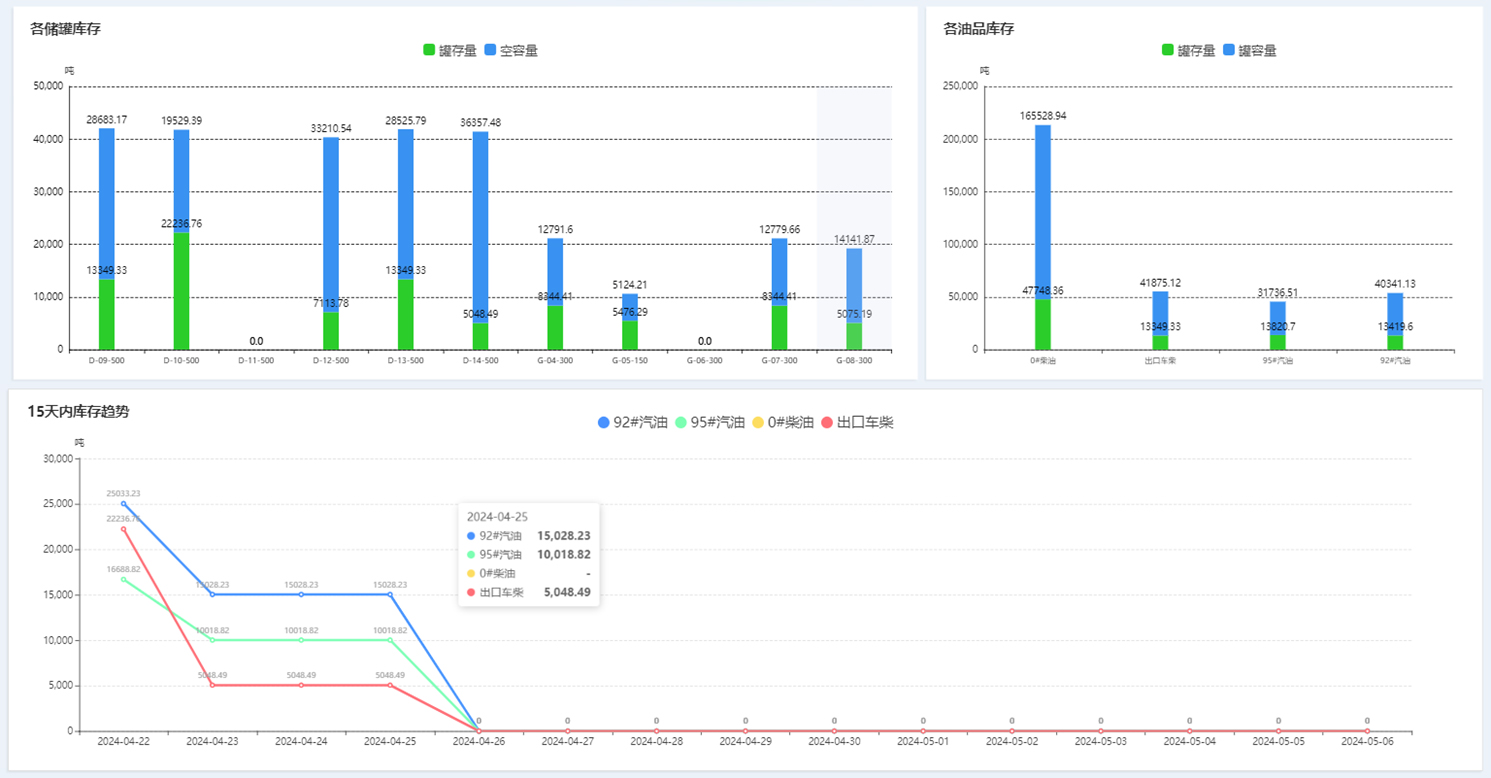 構建全局監控平臺,覆蓋作業流程、資源狀態、生產數據及安防報警等環節,支持生產報表自動生成、收發油計量統計、報警數據可視化分析等功能。通過省、庫級數字看板,直觀展示運營動態,提升預警響應效率。