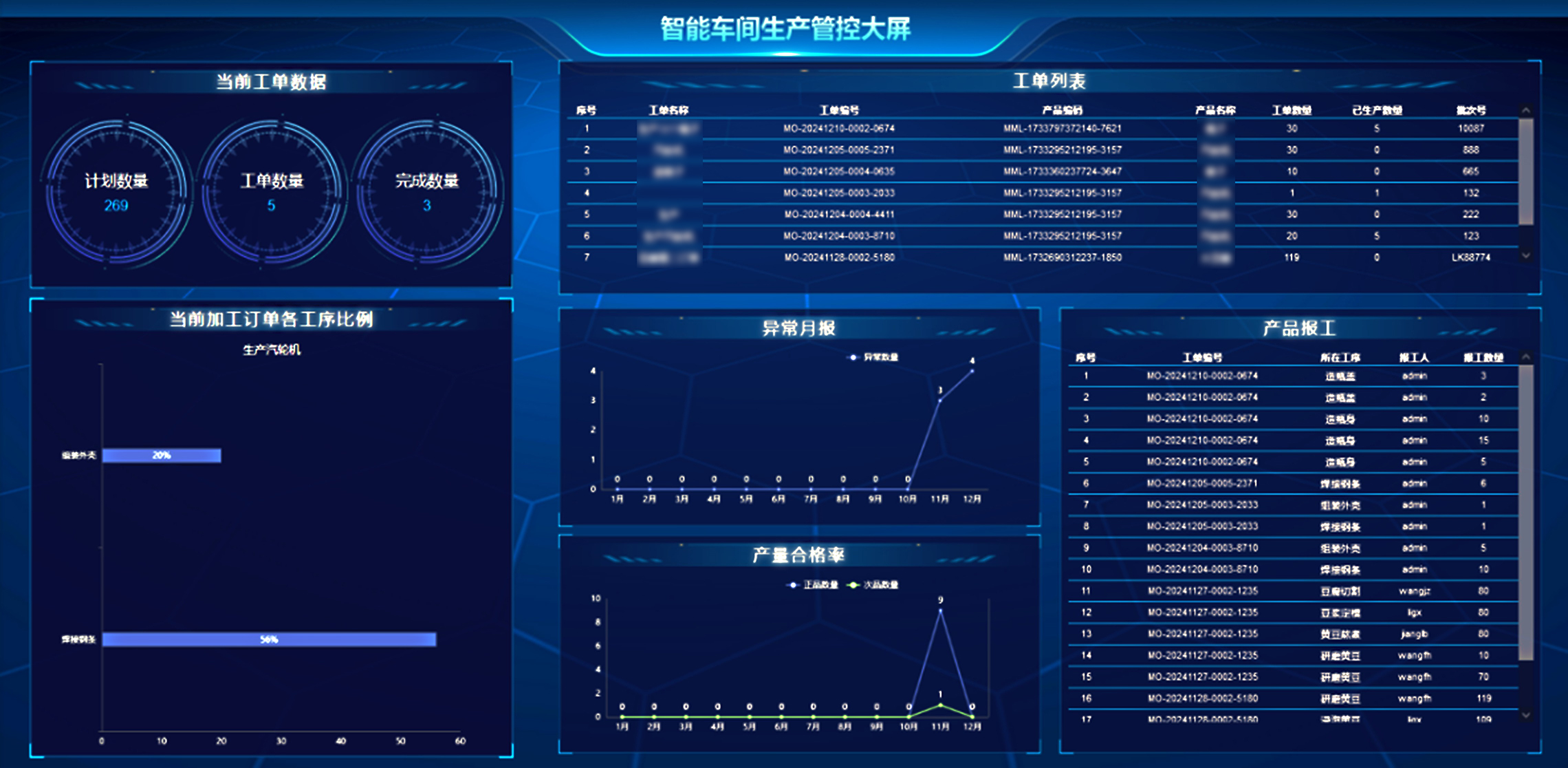 工單達成率、產品良率等數據通過可視化大屏展示,便于管理人員實時掌握生產進度與質量指標,做出更加科學合理的決策。