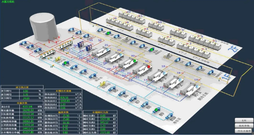 * 內置可視化工具,在B端瀏覽器快速搭建半導體廠務渲染圖、工藝流程圖(如:MAU系統、冰機監控等),替代傳統HMI,多人協同提升組態效率。 * 可視化大屏適用于半導體工廠的指揮中心或展廳展示。