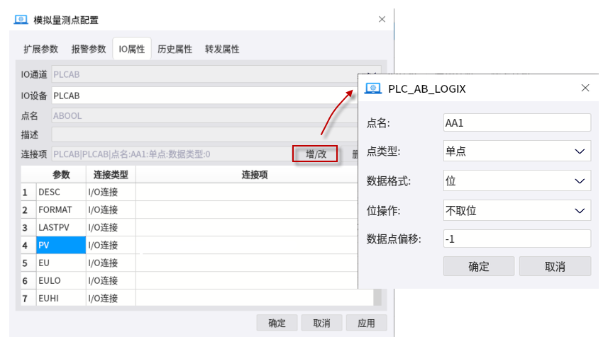 IO屬性-增/改-數據連接配置(點名,點類型,數據格式,位操作,數據點偏移)