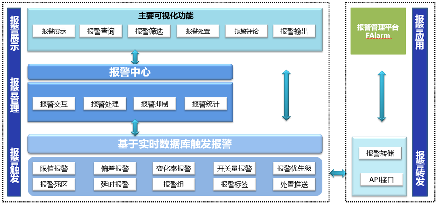 通過數(shù)據(jù)庫配置執(zhí)行、后臺處理、前端展示的模式確保報警觸發(fā)的實(shí)時性。報警多級別、多類型、多結(jié)構(gòu),以及多客戶端顯示/確認(rèn)的設(shè)計(jì)便于客戶高效處理和篩選報警信息。