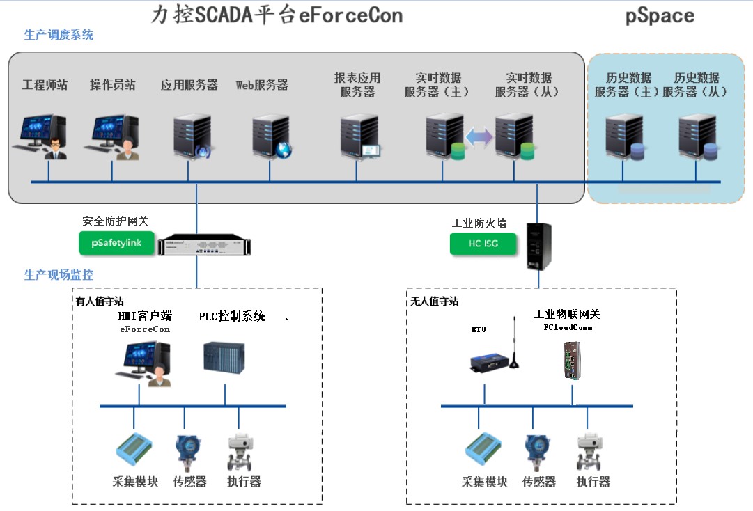 力控eForceCon SCADA系統調度平臺軟件應用于中大型SCADA調度系統,覆蓋從現場監控站到調度中心,提供完整的生產信息采集與集成服務,負責對整個系統的工藝生產進行監控管理和優化決策,助力智慧市政、油氣生產物聯網、智慧礦山等行業領域智能管控平臺建設,提升企業生產自動化水平,達到提質增效的重要目標。同時可與力控企業級實時歷史數據庫pSpace產品無縫連接形成整體解決方案,為企業生產自動化、數字化及管控一體化管理提供支撐。