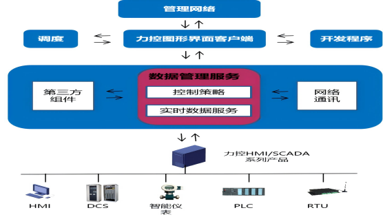 力控控制策略軟件FStrategy與力控科技ForceCon產品家族高度集成,可以和HMI共享全局數據庫,與實時數據庫及圖形界面系統關系緊密。通過監控層的高級控制算法來對控制層(如PLC)的控制算法做整體優化和網絡協同,其軟件應用結構如下圖: