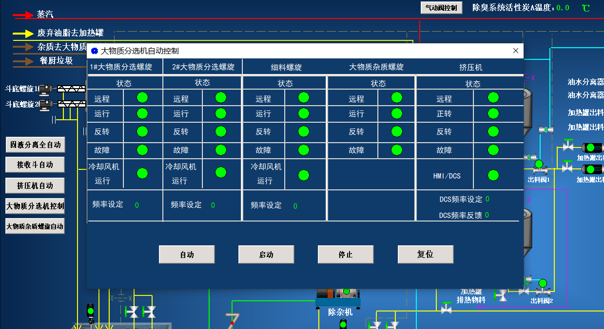 實時動態地顯示全廠工藝流程圖,實時動態畫面采用縱斷流程和平面流程相結合的流程圖顯示方式;流程圖中所有設備的運行狀態采用不同顏色明確顯示其運行狀態。