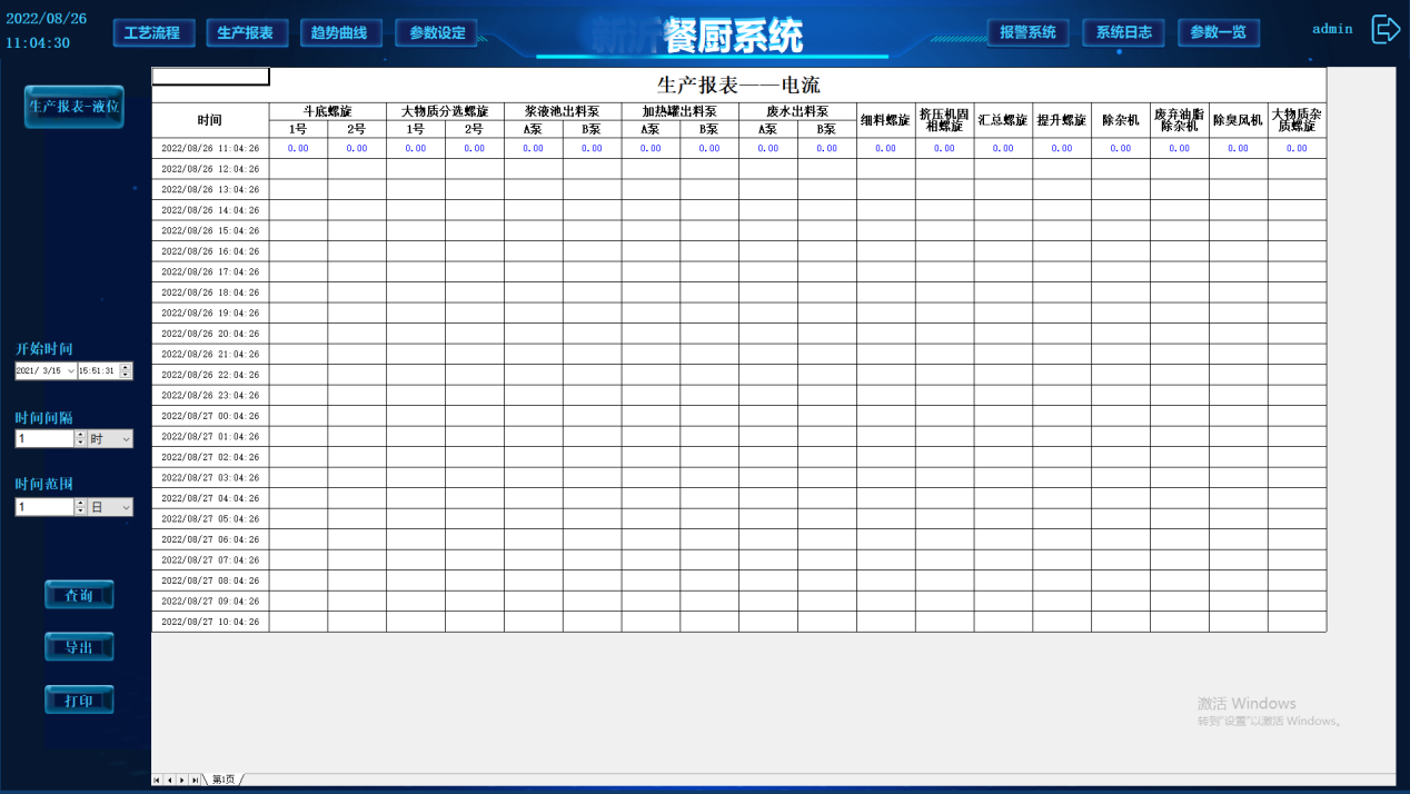 系統自動記錄各種工藝運行數據,將所有數據歸納匯總形成報表,報表可定時打印或召喚打印,操作員也可通過菜單或按鈕進入報表畫面查看歷史報表。